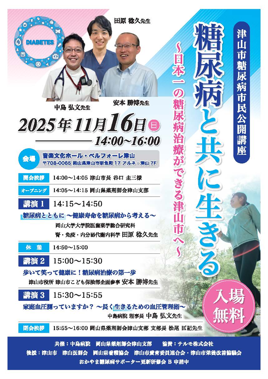 糖尿病は生活習慣が悪いだけの病気ではありません。上手に付き合っていく病気です。糖尿病があることで逆に健康寿命を伸ばす為の取り組みを一緒に考えてみませんか?糖尿病の有無に関わらず、お気軽にご参加ください。